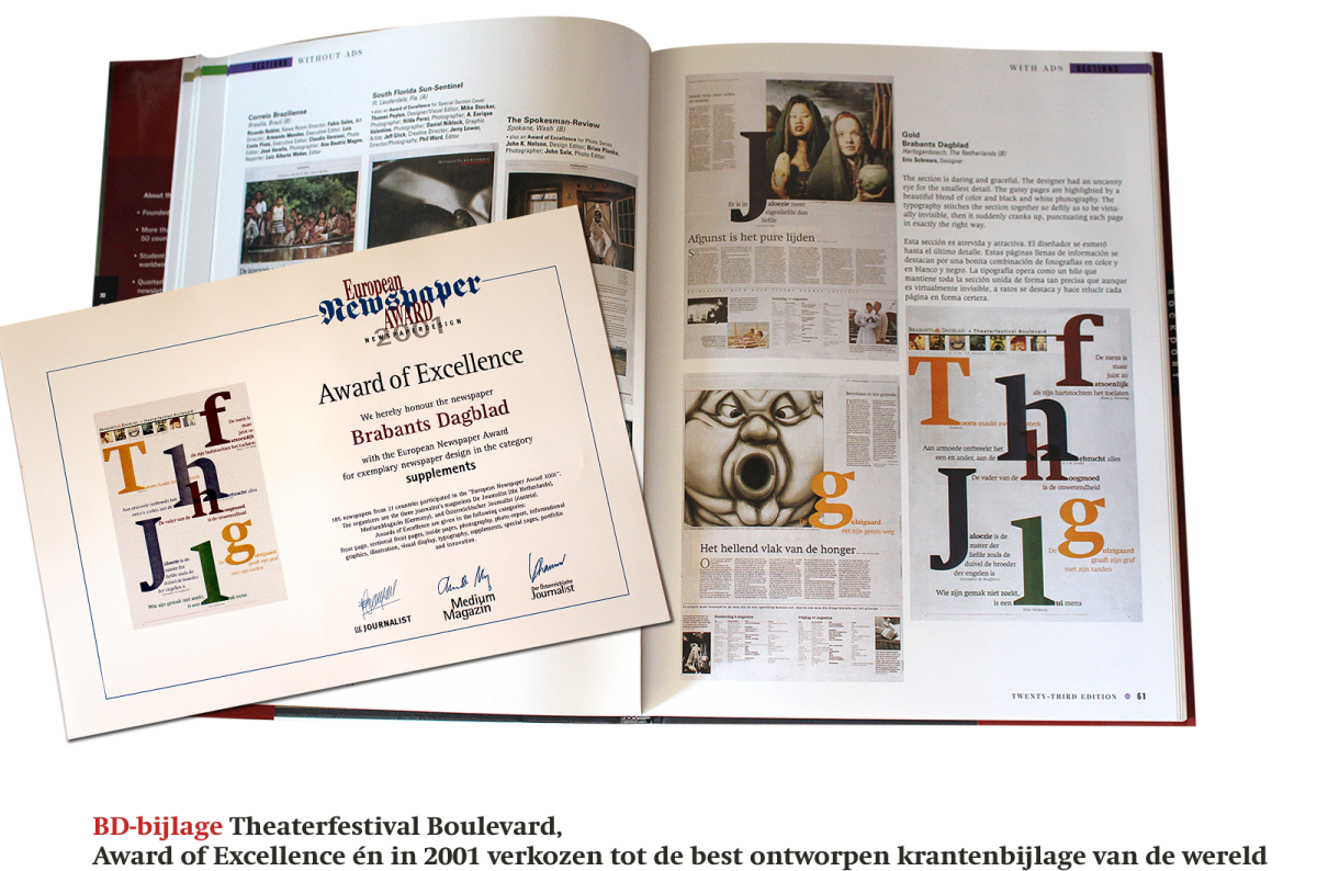 Uit 27.258 inzendingen is de door mij in 2001 ontworpen ‘Boulevard-bijlage’ bekroond tot de best ontworpen bijlage ter wereld. Het thema van de bijlage waren de zeven hoofdzonden en dat heb ik typografisch aangepakt.