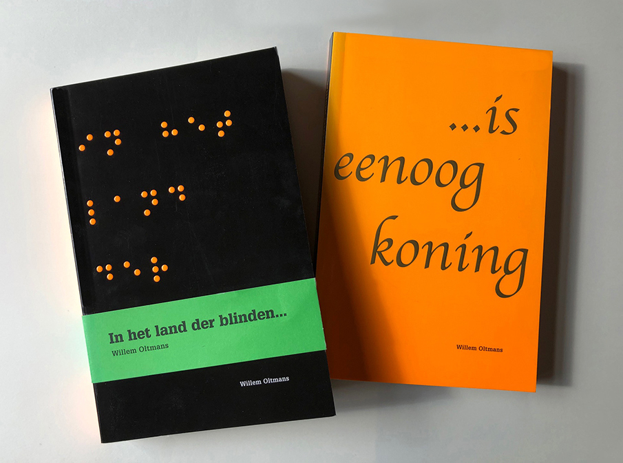 Ruud Buys en ik hebben deze tweedelige serie boekomslagen van Willem Oltmans ontworpen. De brailletekens (In het land der blinden) zijn gepreegd.