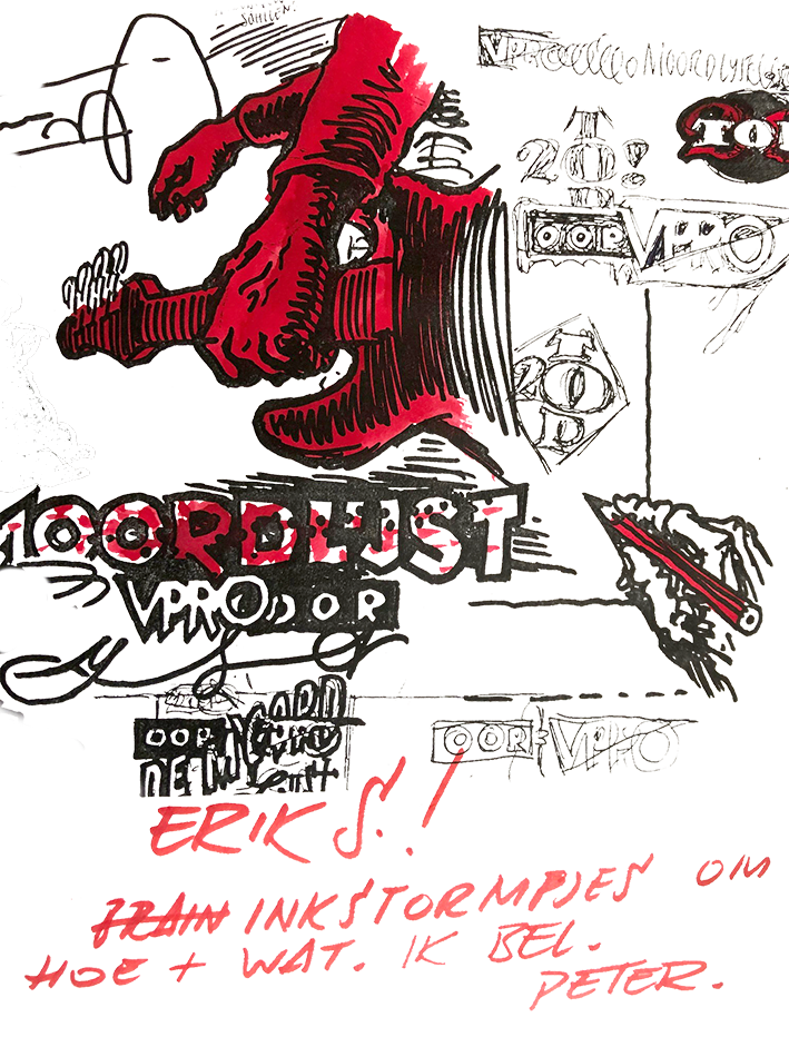 Schetsen van Peter Pontiac voor de Moordlijst.